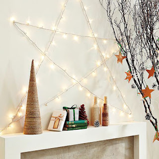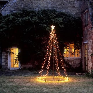 Y para la iluminación, sólo necesitamos unas tiras de lucecitas blancas, para hacer las formas que queramos; bien sujetándolo a la pared, o sobre una estructura, como el precioso árbol que hay en este jardín.
