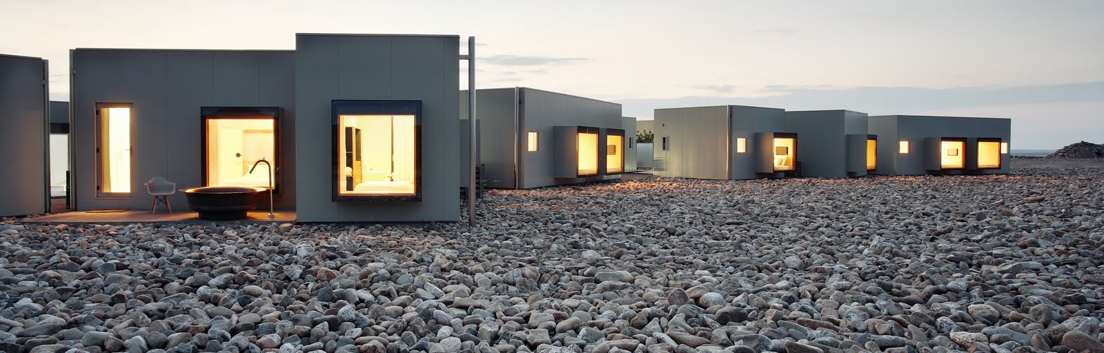 Una sucesión de cubos de madera que albergan las habitaciones se camuflan entre campos de trigo, mostrando una solución innovadora, tanto desde el exterior como en el interior. Se trata de espacios para contemplar el paisaje panorámico de la forma más protegida posible, frente a la virulencia del viento del noroeste.
